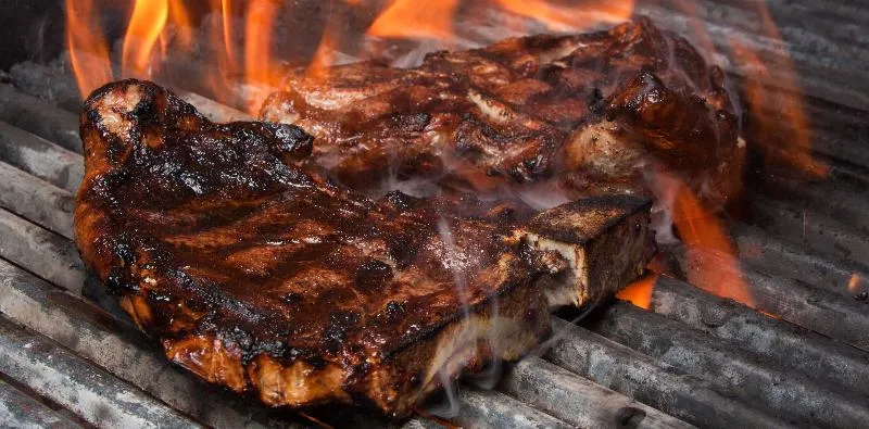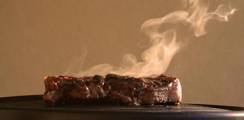 Эта горячая поверхность может быть чем угодно. В самом примитивном примере – раскаленный уголь. Соки капают на уголь и испаряются, превращаясь в водяной пар и дым, наполненный уникальным ароматом обожженной древесины. Дым липкий, стейк мокрый – вуаля – мы знаем, что будет дальше.