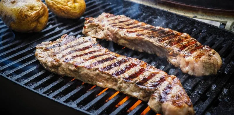Прежде, чем мы углубимся еще дальше, сделаем небольшое отступление. Давайте подробнее рассмотрим сходства и различия между сковородкой и грилем. Когда вы готовите стейк на сковороде, в результате реакции Майяра кусок мяса становится золотисто-коричневым, вкус раскрывается и усиливается. Рисунок прожарки останется как на стейке, приготовленном на сковороде, так и на стейке, снятом с решеток гриля. Мясо в процессе приготовления в обоих случаях размягчается, поскольку межмышечные жиры расщепляются, и мы получаем в итоге сочный результат. Единственный максимально важный момент, который никогда не сможет «воплотить в жизнь» сковорода – это испарение – дымный аромат от капель пищевого сока, которые вступают в контакт с еще более горячей поверхностью.