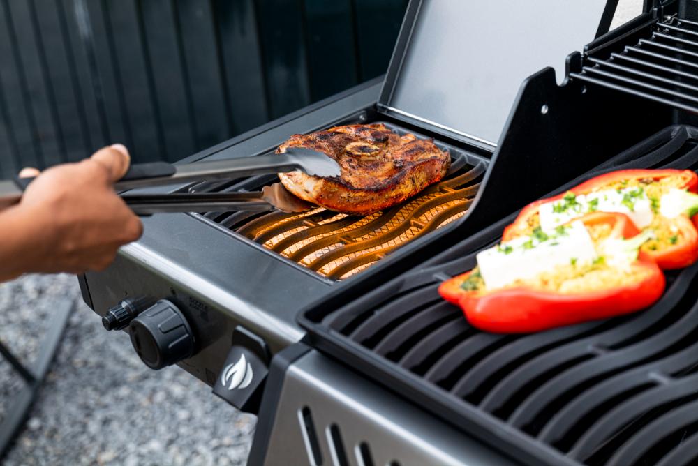 - Дополнительная инфракрасная конфорка SIZZLE ZONE™ в пристолье гриля. Быстро разогревается до высоких температур (до 980 градусов за 30 сек.), что помогает за считанные минуты разогреть гарнир, приготовить соус, обжарить овощи на сковороде или стейк, пока основная зона приготовления занята другими блюдами;