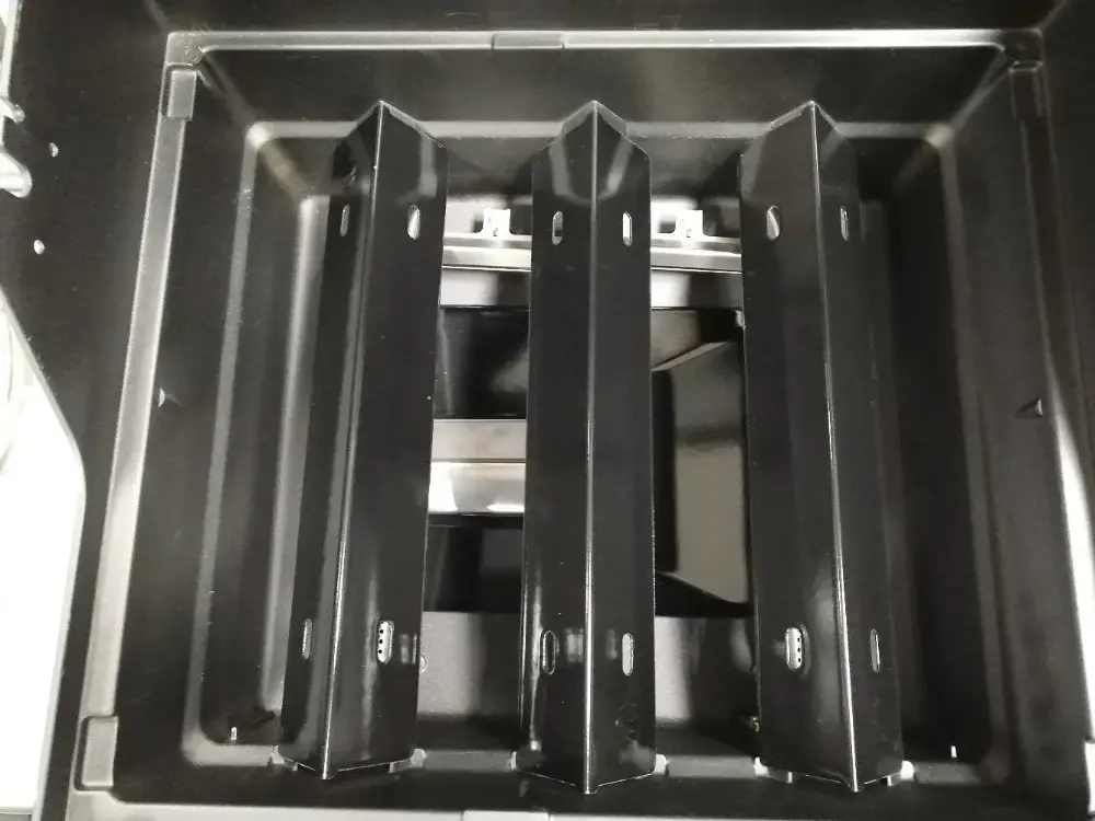 Отсекатели жара установлены над горелками и их долговечность напрямую зависит от материала. По надежности и защите от ржавчины лучше нерж. сталь, поэтому премиальные серии грилей всегда оснащают только нержавейкой.