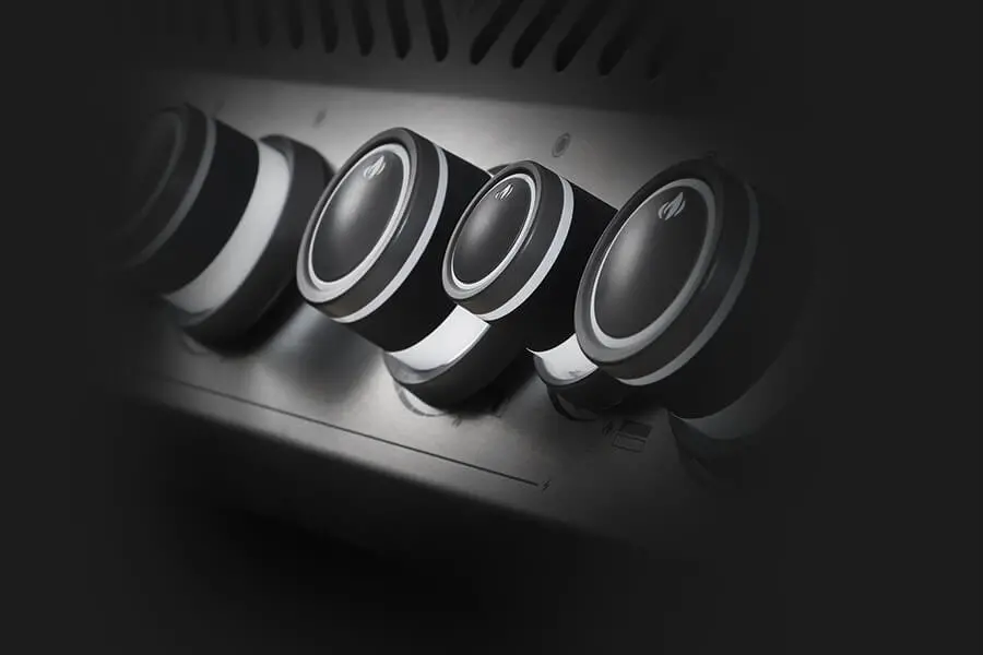 - Эргономичные ручки управления с подсветкой для более комфортного управления грилем в темное время суток;