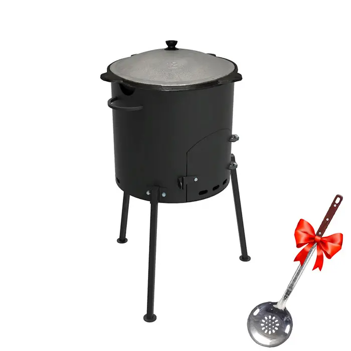 Комплект включает в себя печь "Кайзер-12Д" с дверью и языком и чугунный казан 12 л. из Узбекистана с алюминиевой крышкой. Диаметр печи 40 см. В печи дымоотвод осуществляется с помощью специальных вырезов, расположенных в верхней части Печь имеет удобную высоту и надежную конструкцию.
