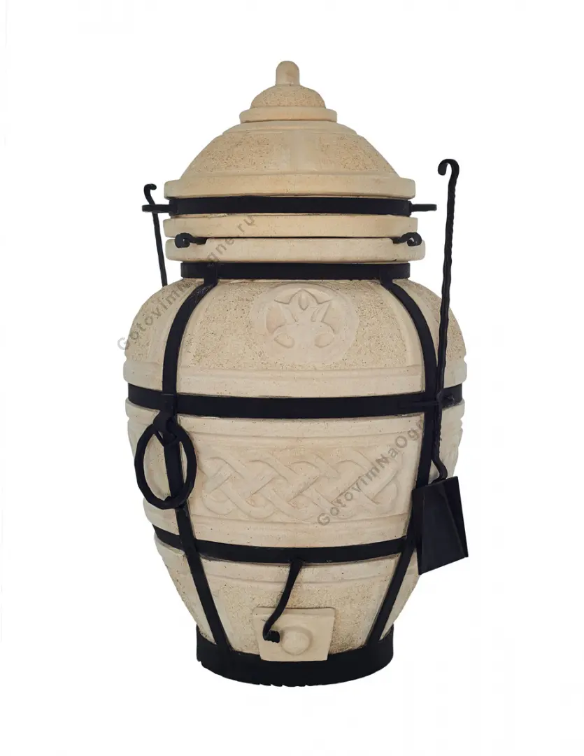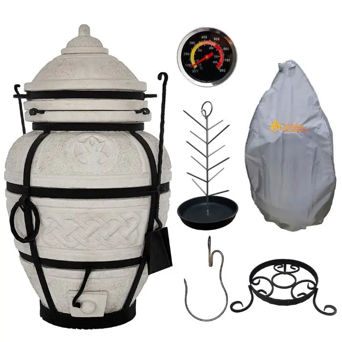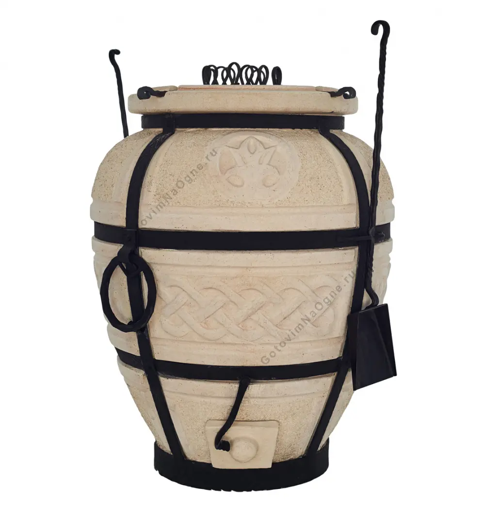 тандыр + подставка под тандыр + крюк + чугунная сковородка "ёлочка" + термометр для тандыра + чехол в подарок + (кочерга, совок, чуг. колосник, 12 шампуров, приспособление для подвешивания шампуров)