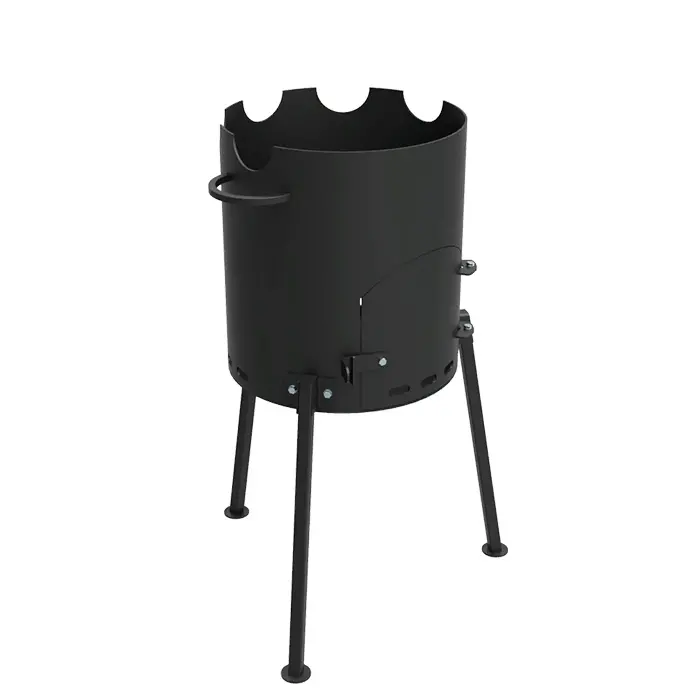 - Разборные ножки имеют плоское монтажное основание. Печь с казаном на 3 точках опоры будут ровно стоять на земле и не углубляться.