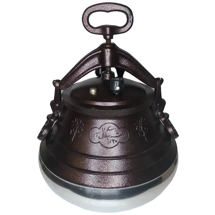 Казан представляет собой толстостенный котелок с герметичной крышкой, изготовленный из алюминия. Крышка фиксируется на казане прижимной планкой с винтовым зажимом. В ней находятся рабочие клапаны для стравливания пара, а также резервный клапан, который обеспечивает безопасность при использовании казана.