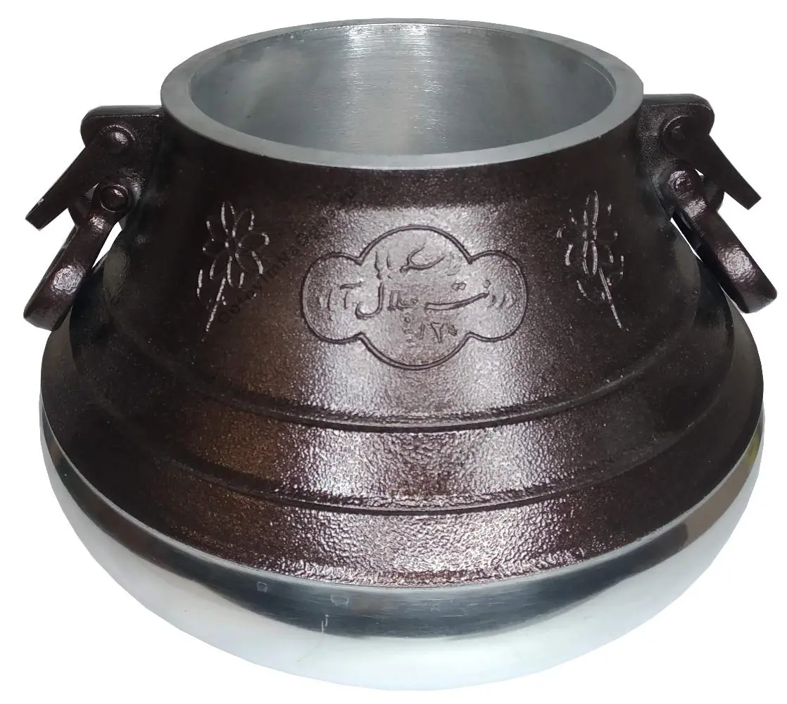 Двухцветный афганский казан имеет никелированное покрытие в нижней части и покрытие из термостойкой краски в верхней части. Для удобной переноски казана и подачи на стол предусмотрены две удобные боковые ручки.