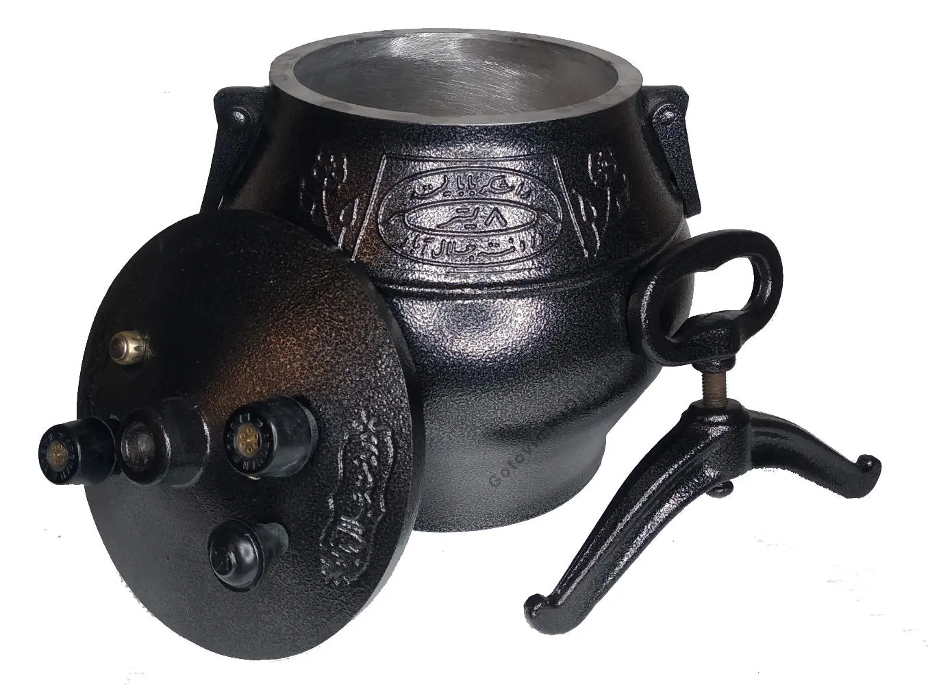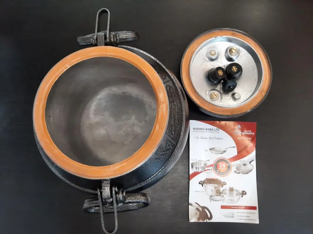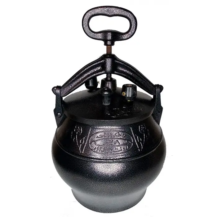 Казан представляет собой толстостенный котелок с герметичной крышкой, изготовленный из алюминия. Крышка фиксируется на казане прижимной планкой с винтовым зажимом. В ней находятся рабочие клапаны для стравливания пара, а также резервный клапан, который обеспечивает безопасность при использовании казана.