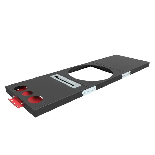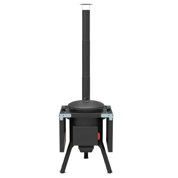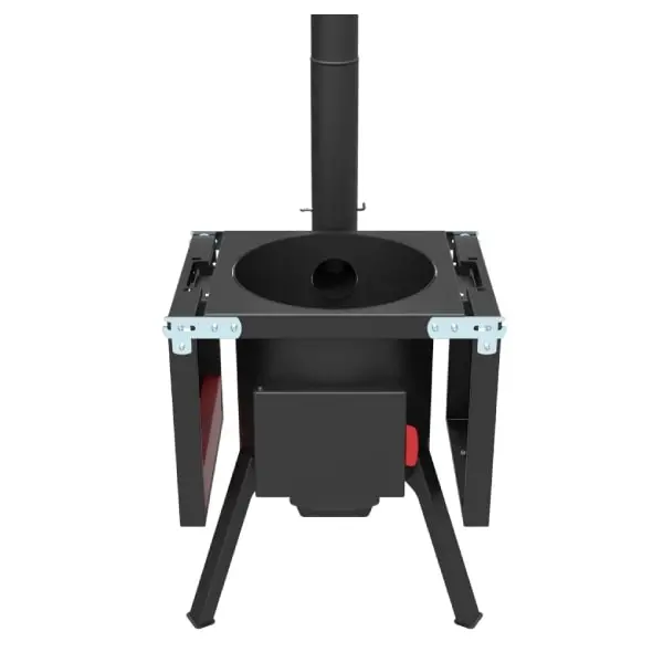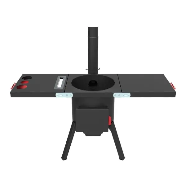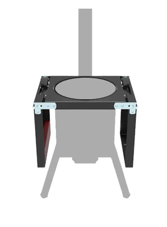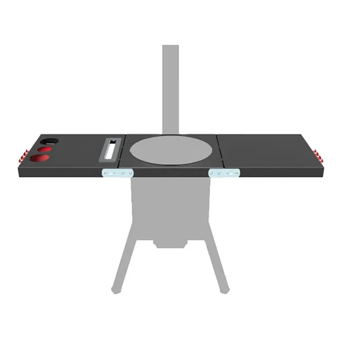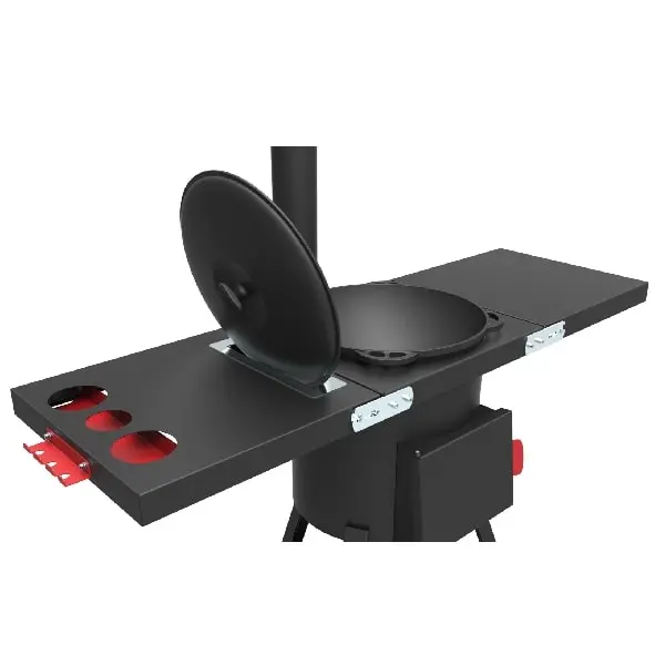 Состоят из трех частей: двух боковых и одной центральной с термостойким покрытием до +700°С. По бокам расположены крючки для инструментов. Один из столиков оснащен органайзером и держателем крышки казана.