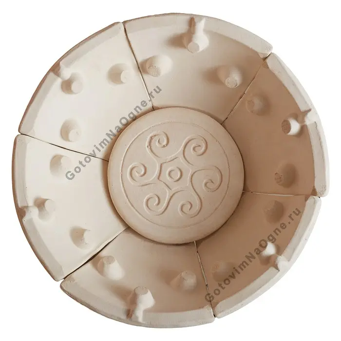 Костровница изготовлена из шамотной глины высшего качества. Это экологически чистый материал, полностью безопасный для человека и окружающей среды. В отличие от металлических вариантов, чаша держит тепло в 2 раза дольше, обеспечивая прекрасную тепловую обработку продуктов. Если вы любите готовить на костре, цените неповторимый аромат блюд, то имеет смысл приобрести чащу в комплекте с решеткой-гриль. В такой комплектации идеально удаются мясные и рыбные стейки, котлеты, хот-доги и любое барбекю.