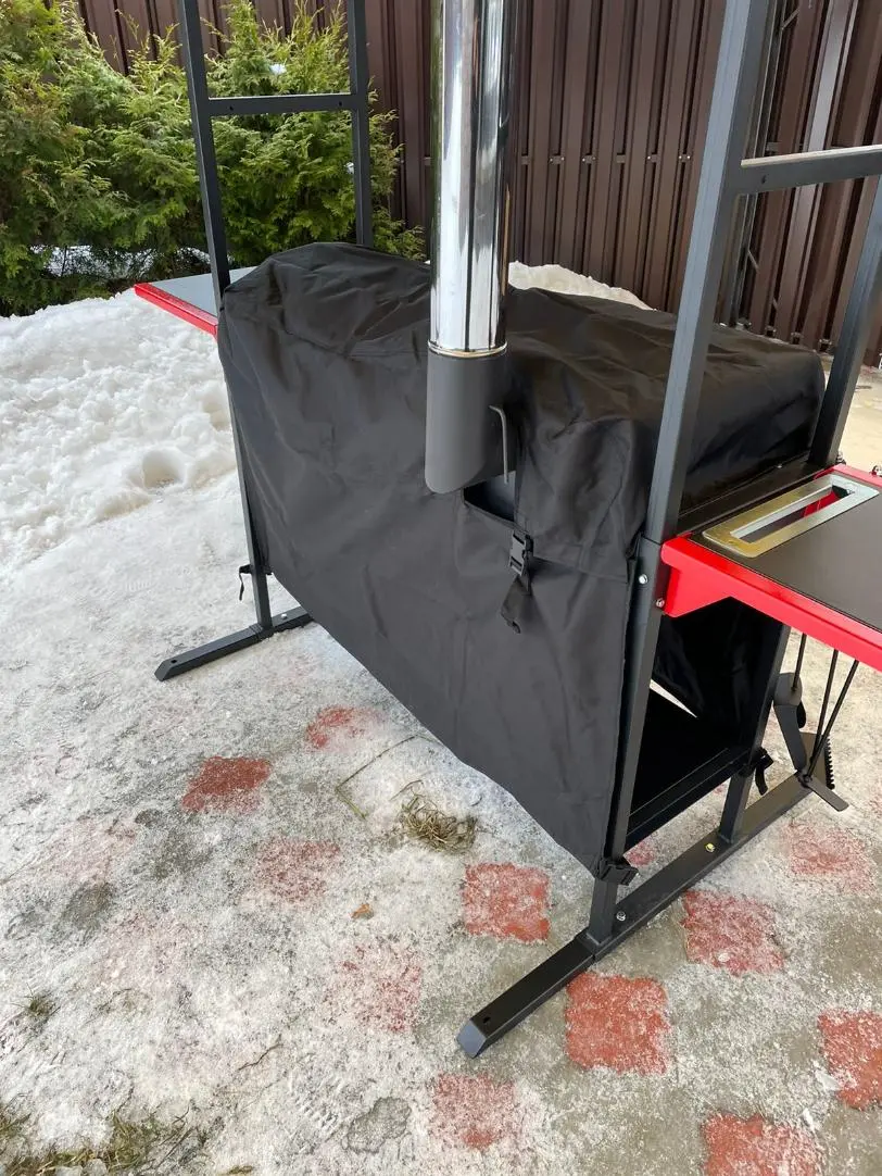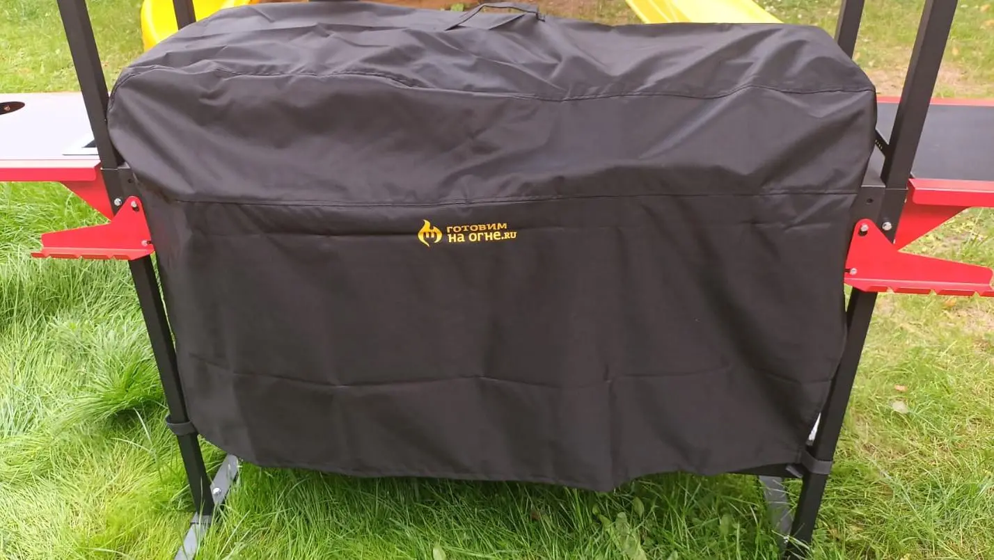 Чехол для гриль-печи Искандер Инклайн 400 и Инклайн Эйр с крышей. Плотная ткань Oxford 600 с водоотталкивающей пропиткой PU1000. Для фиксации чехла предусмотрены фастексы по бокам, которые стягивают чехол и защищает от ветра. Защищает топку и дровницу.