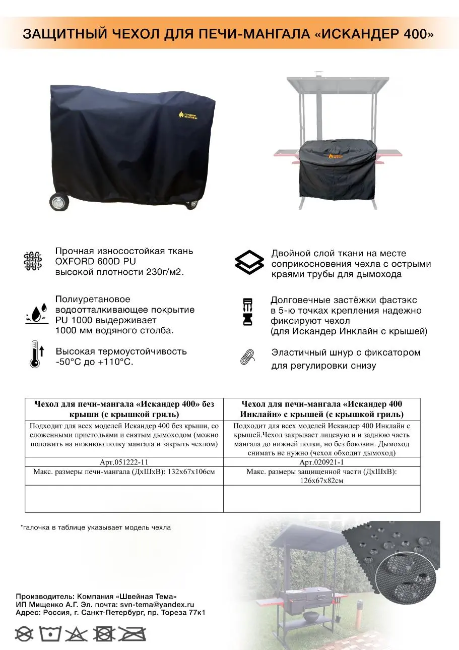 Изготовлено компанией "Швейная Тема" по заказу компании "Готовим на огне". Эл. почта по вопросам оптовых закупок чехлов для грилей и тандыров: