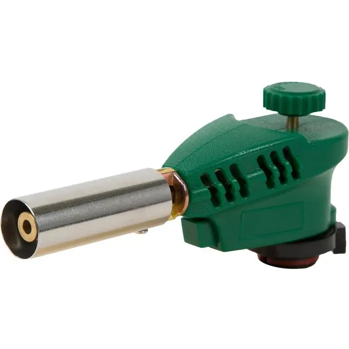 Газовая горелка - это компактный и практичный прибор, который используется в качестве источника направленного пламени. Температура пламени в зоне основного факела достигает 1300°С. Модель подходит для прогрева металлических труб с замерзшими жидкостями, пайки и розжига дров или древесного угля. Горелка работает на газовом топливе с клапаном нажимного типа и цанговым захватом. Газовый баллон в комплект горелки не входит.