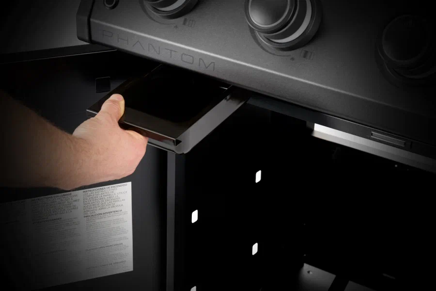 Гридль NAPOLEON® Rogue PRO30 Phantom Griddle сочетает в себе потрясающий дизайн с шелковистым, чёрным, матовым покрытием и отличную функциональность. Благодаря толщине в 3,5 мм рабочая поверхность обеспечивает превосходное сохранение тепла и равномерное приготовление. Рабочая поверхность сковороды изготовлена из пищевой нержавеющей стали, поэтому вы можете без опасений использовать металлические инструменты. Четыре мощные горелки мощностью 10,80 кВт обеспечивают равномерное распределение тепла: от низких температур для приготовления деликатных блюд до высоких температур для обжаривания. Съёмный контейнер для специй и приправ в левом столике позволяет держать все необходимое под рукой. Складные боковые столики оснащены крючками для инструментов что добавляет комфорта во время приготовления, инструменты не мешаются и всегда под рукой. Поддон для сбора жира с фронтальным доступом, эргономичное отверстие для сбора жира и съёмный лотк позволяют поддерживать чистоту на рабочей поверхности.