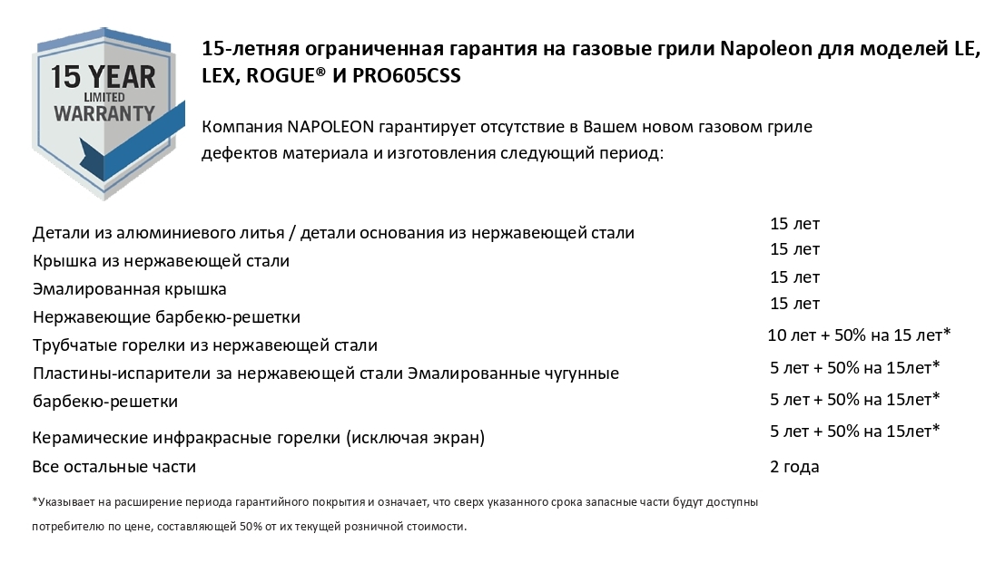 - Гарантия 15 лет, ограниченная, с более подробной информацией о гарантии можно ознакомится на сайте NAPOLEON;