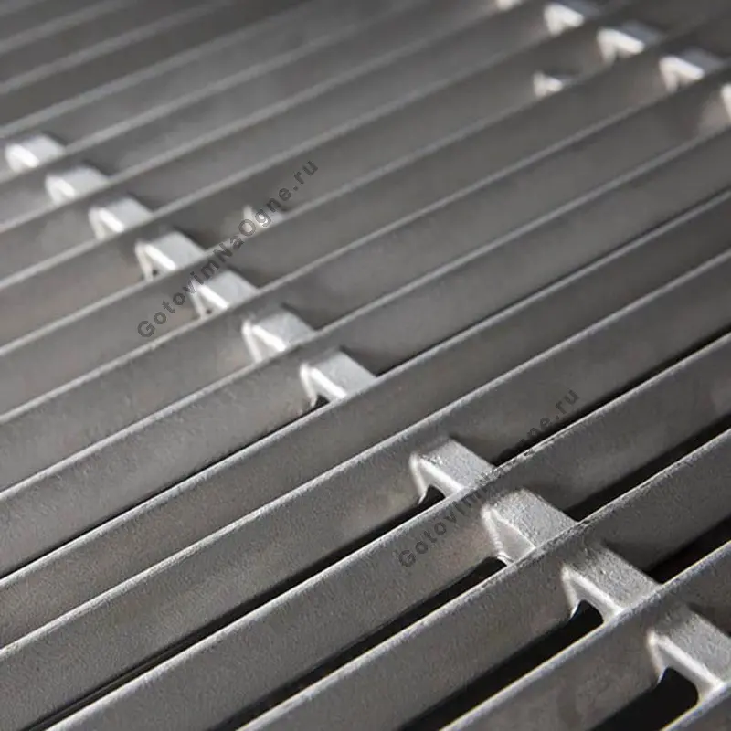 - Расстоянием между прутьями всего 6мм. Мелко нарезанная пища не падает сквозь решетку. С одной стороны решетки заострены для нанесения фирменного рисунка на стейке, а с другой стороны имеют углубления для удержания сока и запекания курицы или нежной рыбы;
