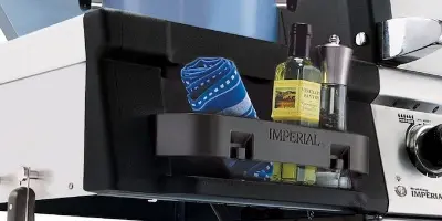 - Прочные боковые полки из нержавеющей стали оборудованы крючками для инструментов и удобным держателем для соусов и полотенец.