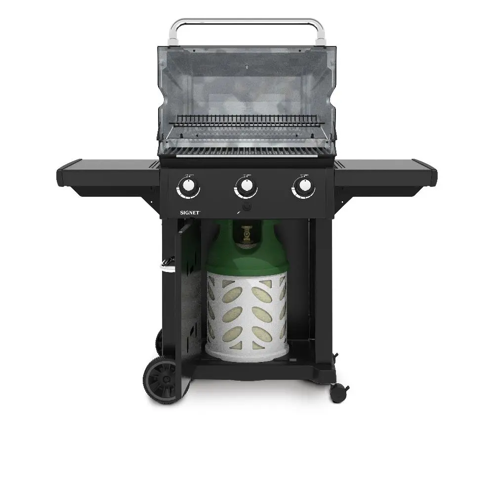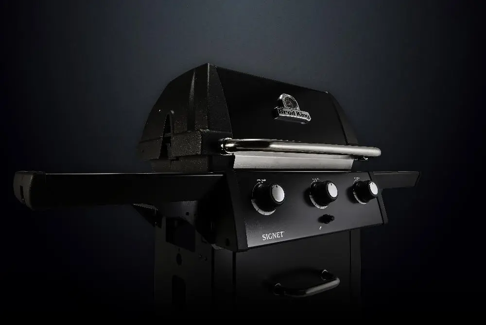 BROIL KING Signet 320 SHADOW Имеет 3 горелки общей мощностью 11,4кВт, чугунные решётки, складные пристолья, электрическую систему поджига и обширную гарантию.
