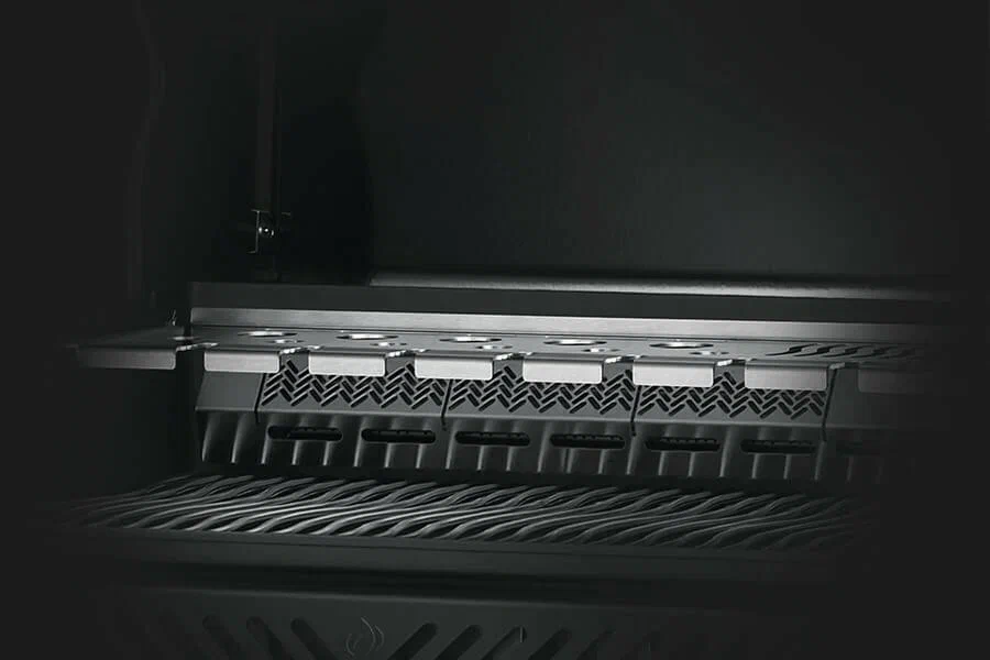 Отсекатели жара установлены над горелками и их долговечность напрямую зависит от материала. По надежности и защите от ржавчины лучше нерж. сталь, поэтому премиальные серии грилей всегда оснащают только нержавейкой.