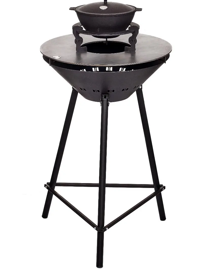 - 5 в 1: дровяной гриль, угольный гриль, мангал, казан, костровая чаша.
