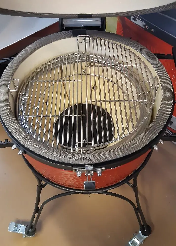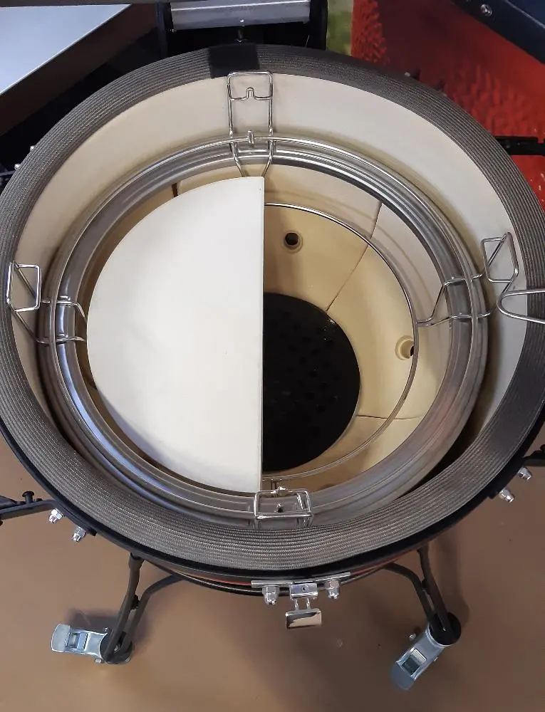 Напоследок важно рассказать о самом проблемном элементе любого керамического гриля – речь здесь, конечно, пойдет о термопрокладке гриля. Обновлённый Камадо Джо оснащен самой современной и технологичной прокладкой, изготовленной из тончайшей металлической проволоки и огнеупорного стекла.