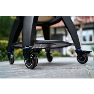 - Обновленная, особо устойчивая подставка на колесиках с нижней полкой для хранения аксессуаров и угля.