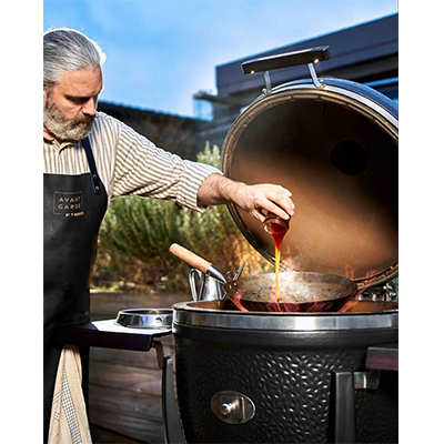 Поверхность гриля, которую при желании можно дополнить набором чугунных решеток или же расширить стальной планчей, достаточно велика, чтобы одновременно готовить несколько блюд и гарниров. Вся внутренняя система у модели Avantgarde разделена на две части. Это дает возможность одновременно совмещать приготовление двух разных блюд: одного на прямом, а другого на косвенном жару, а также в любой момент уменьшить или увеличить высоту решеток по отношению к углям. Благодаря уникальной системе подачи щепы для копчения, можно добавлять щепу прямо во время приготовления через заслонку в корпусе, не открывая крышку гриля. В комплекте поставки гриля Classic Avantgarde уже есть все необходимое для того, чтобы начать им пользоваться: керамическая футеровка, корзина для углей с разделителем, поддоны для сбора жира, керамические жароотсекатели, 2 решетки в форме полумесяца из нержавеющей стали, направляющая для подбрасывания щепы для копчения, лопатка для легкого удаления золы, а также ручка для снятия решеток. Останется приобрести качественный уголь, и Вы готовы к кулинарным открытиям! А дополнив Ваш гриль набором аксессуаров, таких как чугунная планча, камень для пиццы, сковорода-вок, вертел с электроприводом для приготовления шашлыка или большая стальная планча, гриль превратится в полноценную уличную кухню.