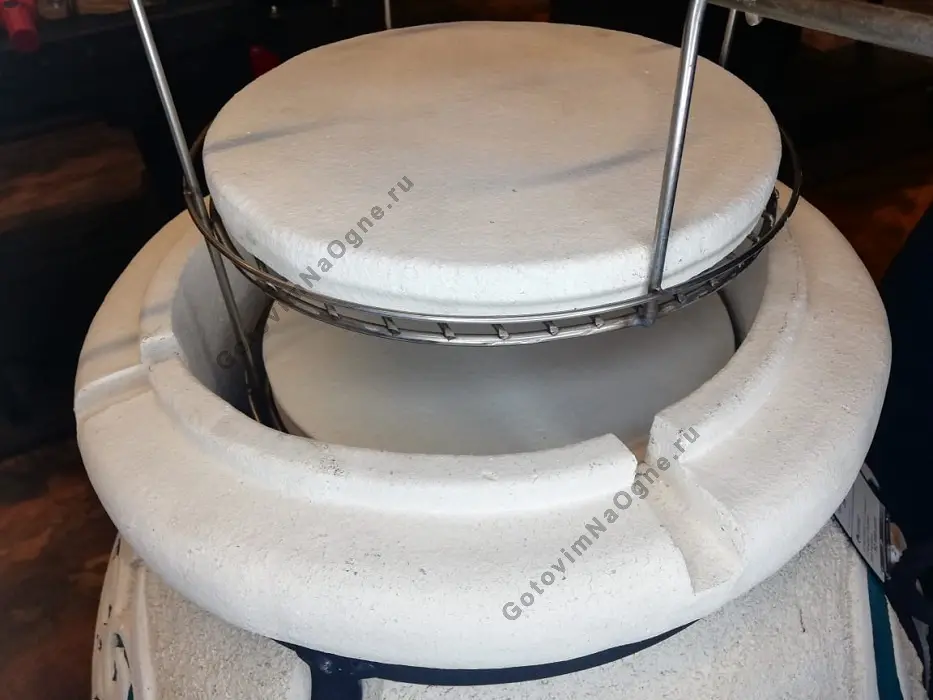 В зависимости от диаметра горловины выбираются аксессуары. Для широкой горловины подходят этажерки и сковородки-елочки большого размера. При стандартной горловине подойдут только не большие аксессуары.
