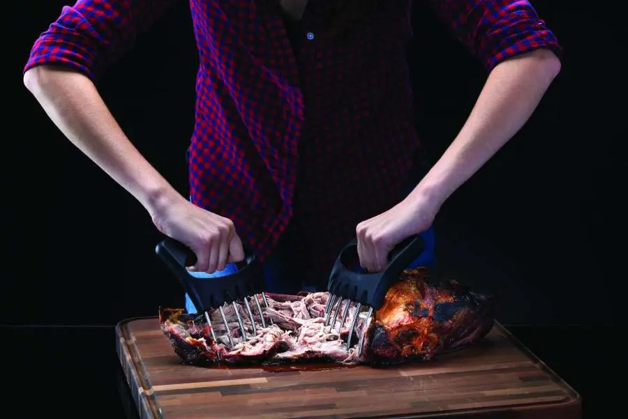 Эргономичные пластиковые ручки удобно лежат в руке, обеспечивают надежный захват, а зубья из нержавеющей стали позволяют легко перемещать даже большое жаркое на гриль и обратно. В кратчайшие сроки отделите копченые куски мяса, целую курицу или индейку. Используйте этот аксессуар не только для измельчения мяса, но и как держатель фруктов для нарезки.