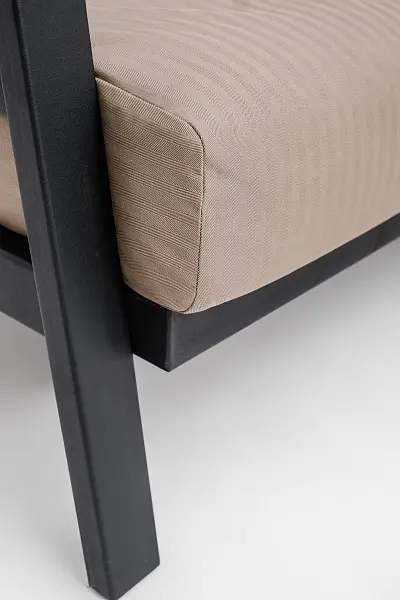 - Устойчива к ультрафиолету, истиранию, загрязнению, плесени, и обладает высокой износостойкостью. Не пропускает влагу, что позволяет безопасно эксплуатировать подушки из этого материала на улице.