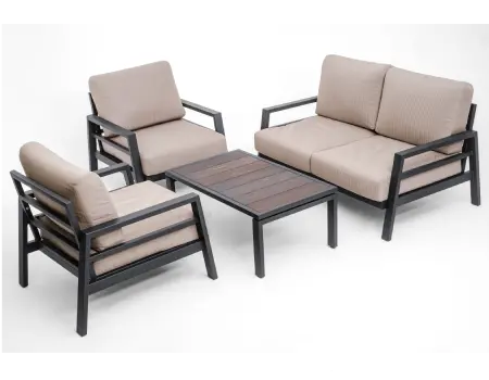 Диванная группа мебели GRILLVER Savanna, для террасы и сада от компании GRILLVER. Это современная коллекция садовой мебели с каркасом из металла с очень удобной посадкой. Набор состоит из двух кресел, дивана и стола.