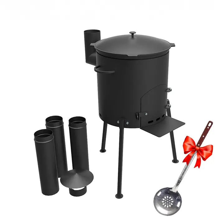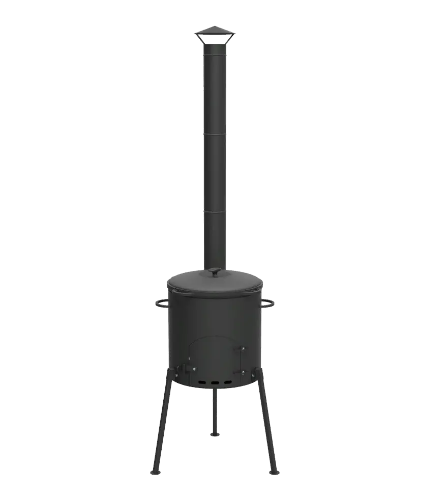 Доступная печь с дымоходом и качественный казан объемом 12 л.
