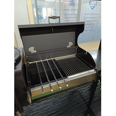Решётка-гриль - быстросъёмная. Комплектный съемник позволяет это сделать быстро и безопасно, благодаря чему можно жарить шашлык как обычно, на шампурах. Важный момент - конструкция крышки позволяет готовить на шампурах и при закрытой крышке.