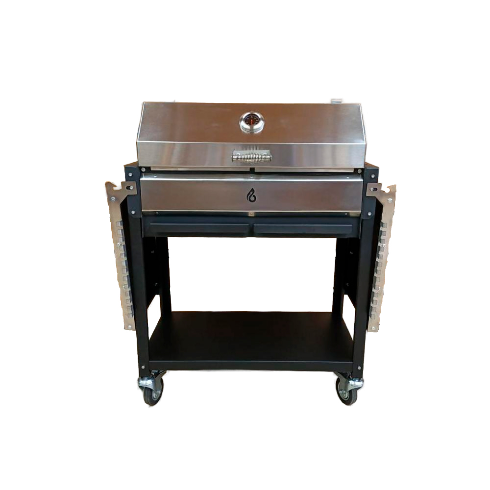 - Два удобных складных столика с крючками для аксессуаров. Хватит места и для решетки, и для шампуров с аксессуарами. Боковины с крючками интегрированы в кронштейн крепления столиков, которые подвергаются трению при эксплуатации, поэтому они выполнены из немагнитной нерж. стали 2 мм!