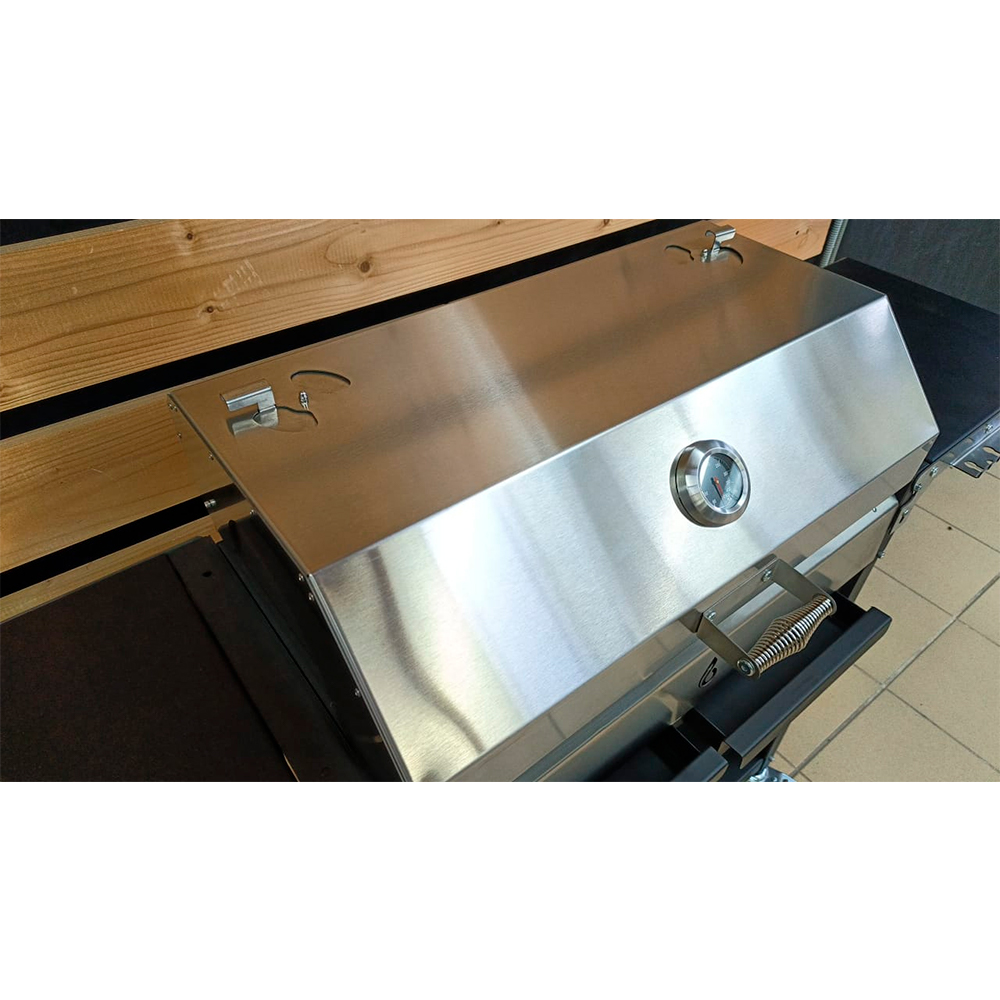 - Эффективная защита от ветра: боковые панели крышки способствуют лучшему удержанию тепла, что повышает эффективность приготовления.