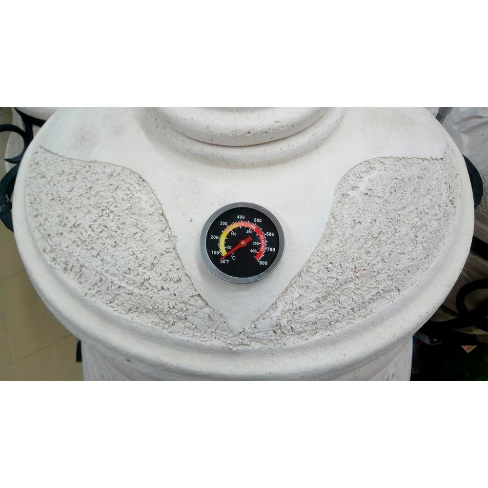 Отличный помощник для приготовления сочных блюд в тандыре. Как показала практика, при приготовлении барбекю методом запекания, термометр крайне необходим, поэтому все грили и печи оснащаются термометрами. Термометр дает возможность контролировать температуру внутри тандыра и дает понимание, при какой температуре происходит процесс готовки. Он поможет понять, в каком режиме находится тандыр, можно ли сделать в тандыре вторую закладку пищи.