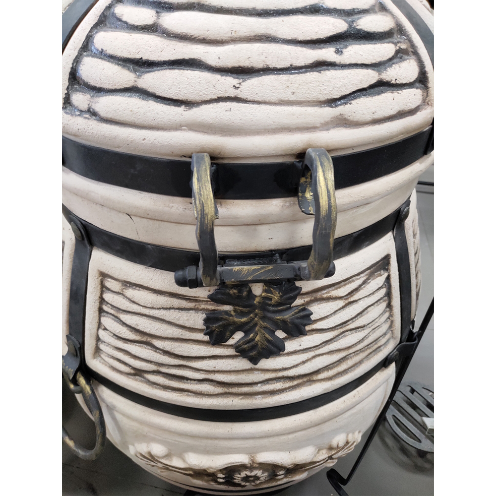 Традиционно для Технокерамики тандыры украшаются декоративным орнаментом и росписью ручной работы. Крышка - без прорезей для шампуров, что улучшает удержания тепла внутри тандыра.