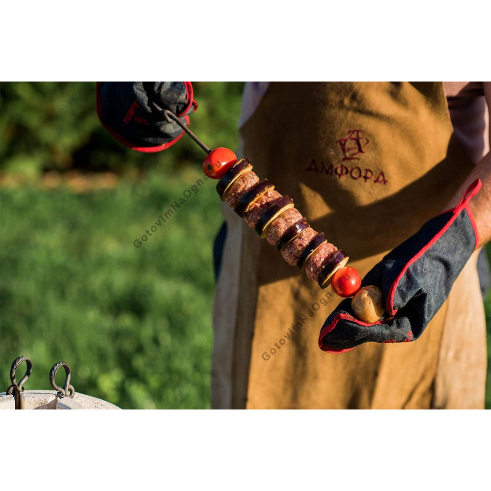 Также рекомендуем обратить внимание на прочие полезные аксессуары, которые указаны в модуле "Аксессуары" ниже. Например, 3-х ярусную этажерка, подставка для запекания курицы, подставка под крышку тандыра, зольник для сбора угля. Под крышкой шампуры очень сильно нагреваются (температура 400°С) и работать с ними при помощи обычной прихватки становится очень сложно. Поэтому мы рекомендуем использовать специальные термостойкие перчатки.
