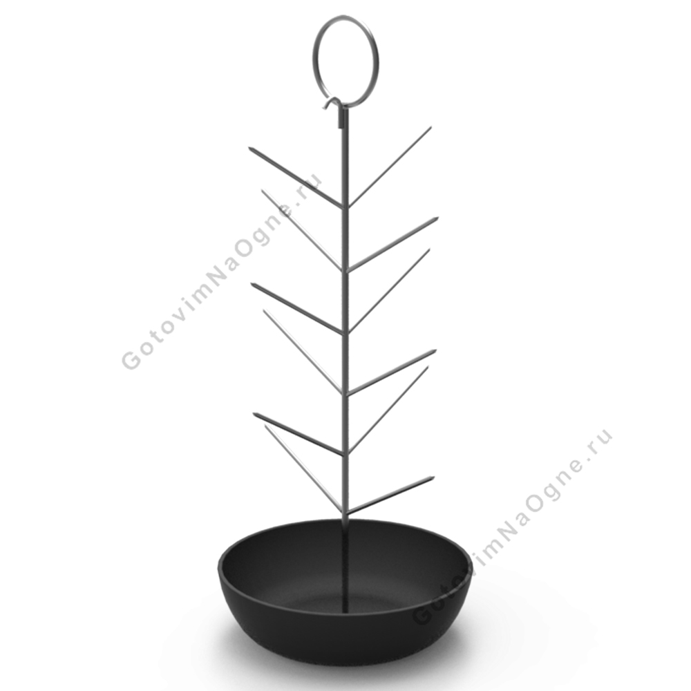 Чугунная сковородка-ёлочка - наиболее удобный и универсальный аксессуар для тандыров. Насадите на "перья" сочный шашлык или бараньи ребрышки и разместите на сковороде картофель. Поверьте, результат будет превосходный! Вы получаете сочное мясо и запеченный картофель, пропитанный соком шашлыка. Разнообразие продуктов, которое можно приготовить в "Елочке" одновременно, приятно удивляет. Важно отметить, что приготовление на чугунной сковородке-ёлочке еще и более полезно. Жир от мяса не капает на угли, тем самым не образуются канцерогены. В чугунной сковороде гарнир не пригорает по сравнению с нержавеющей тарелкой.