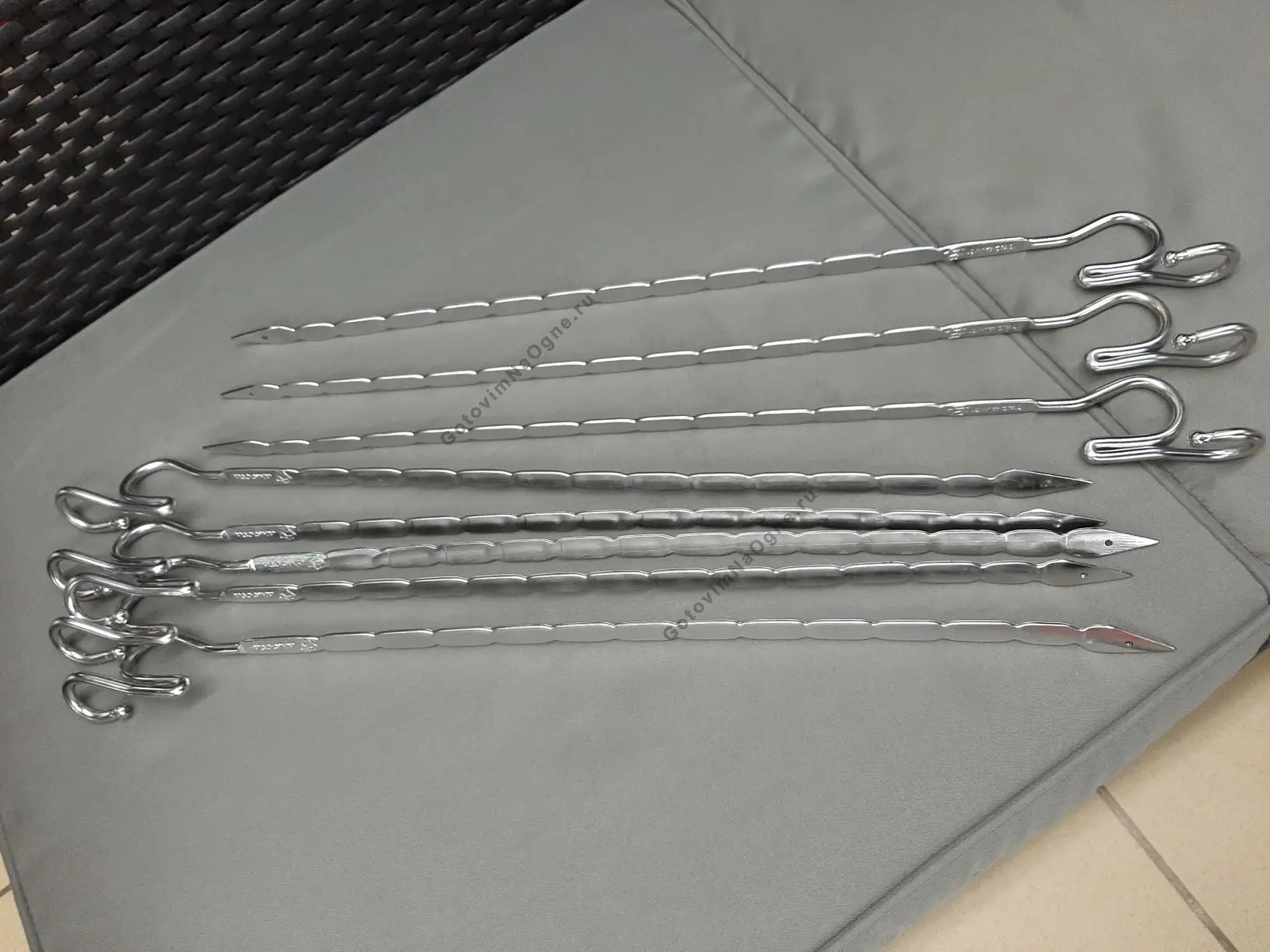 Тандыр "Скиф" 2020 модельного года комплектуется кованными шлифованными шампурами из нерж. стали с отверстиями на концах. Крестовина для крепления шампуров также из нерж. стали.