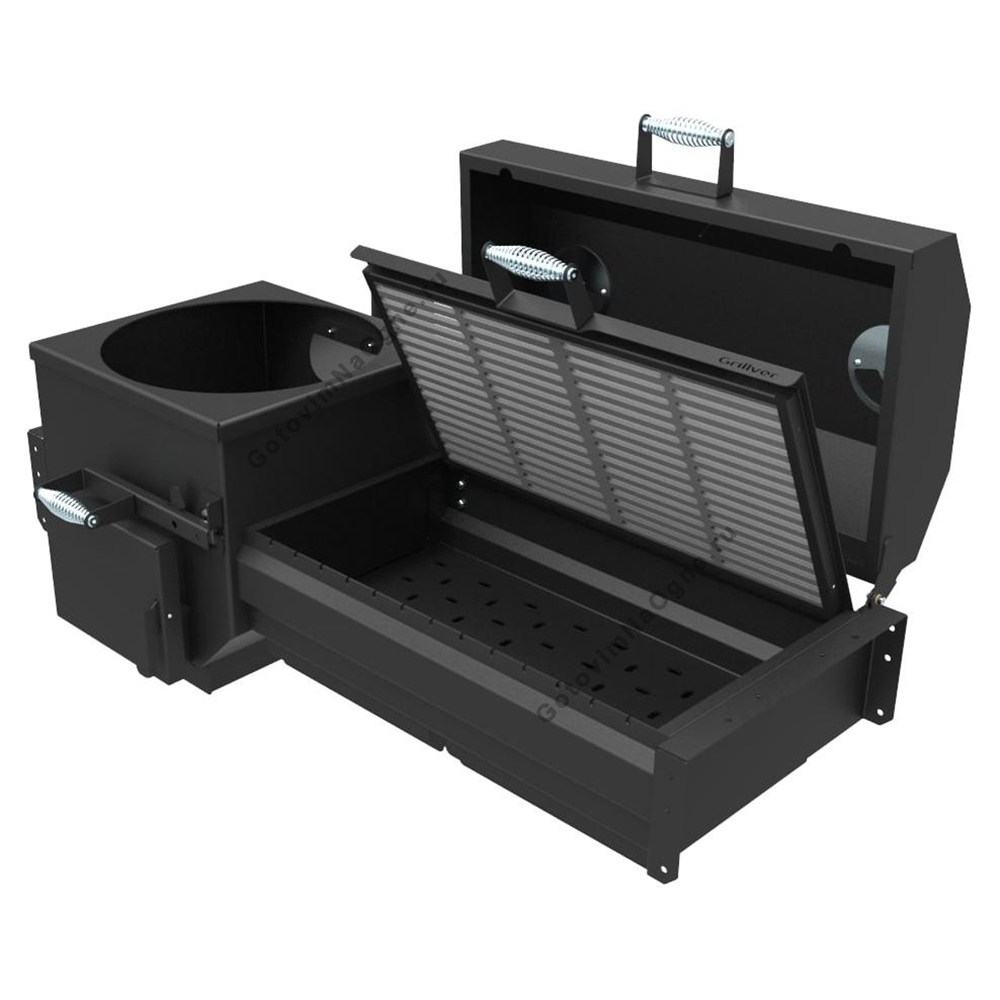 Решётка-гриль - быстросъёмная, благодаря чему решётку можно снять и можно жарить шашлык на мангале, как обычно.