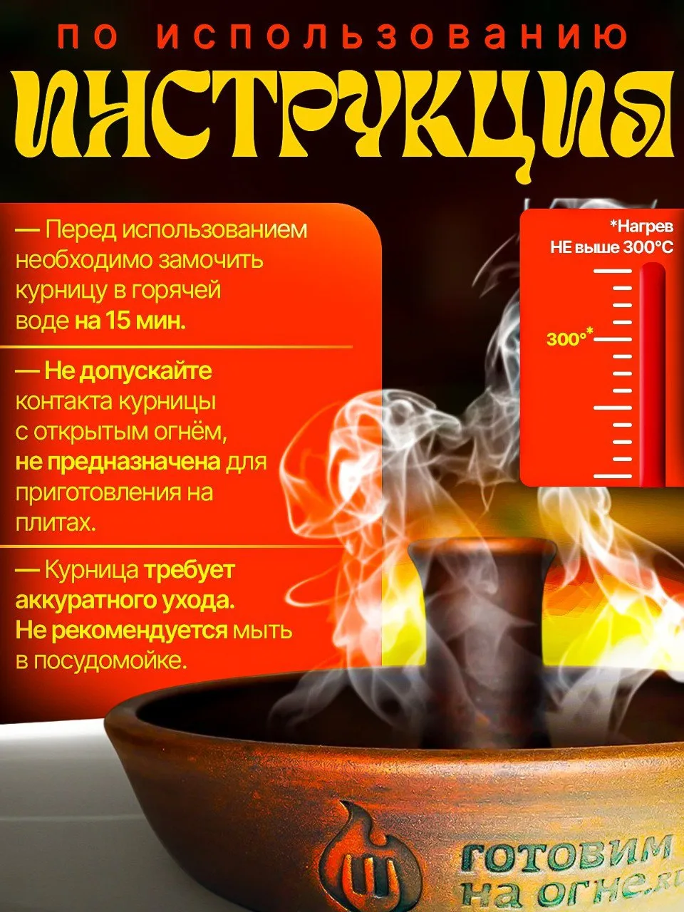 Не допускайте контакта керамической посуды с открытым огнем, а так же НЕ ставьте изделие на газовую, электрическую или керамическую плиту.