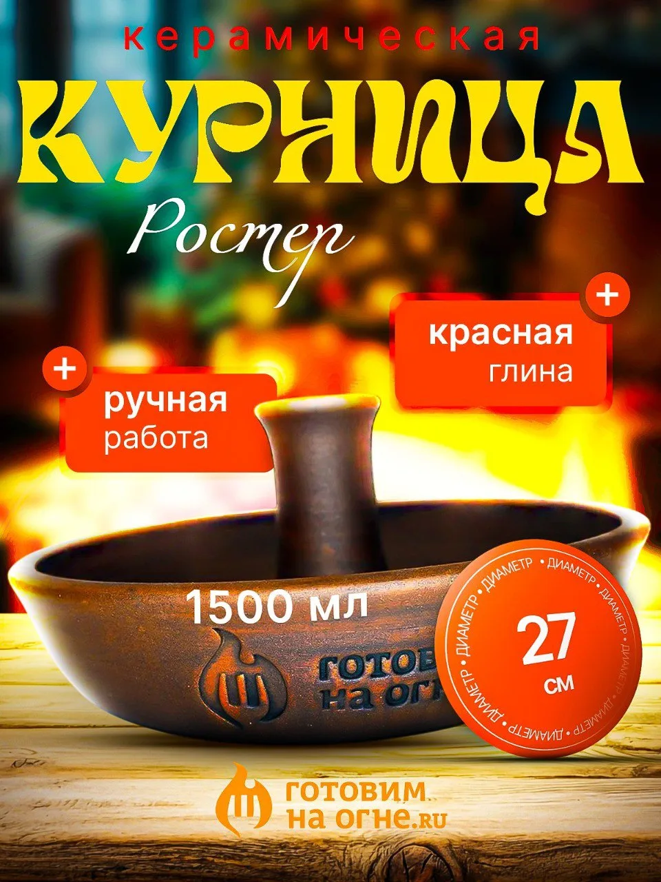 Курница керамическая большая 27см. "Готовим на огне"