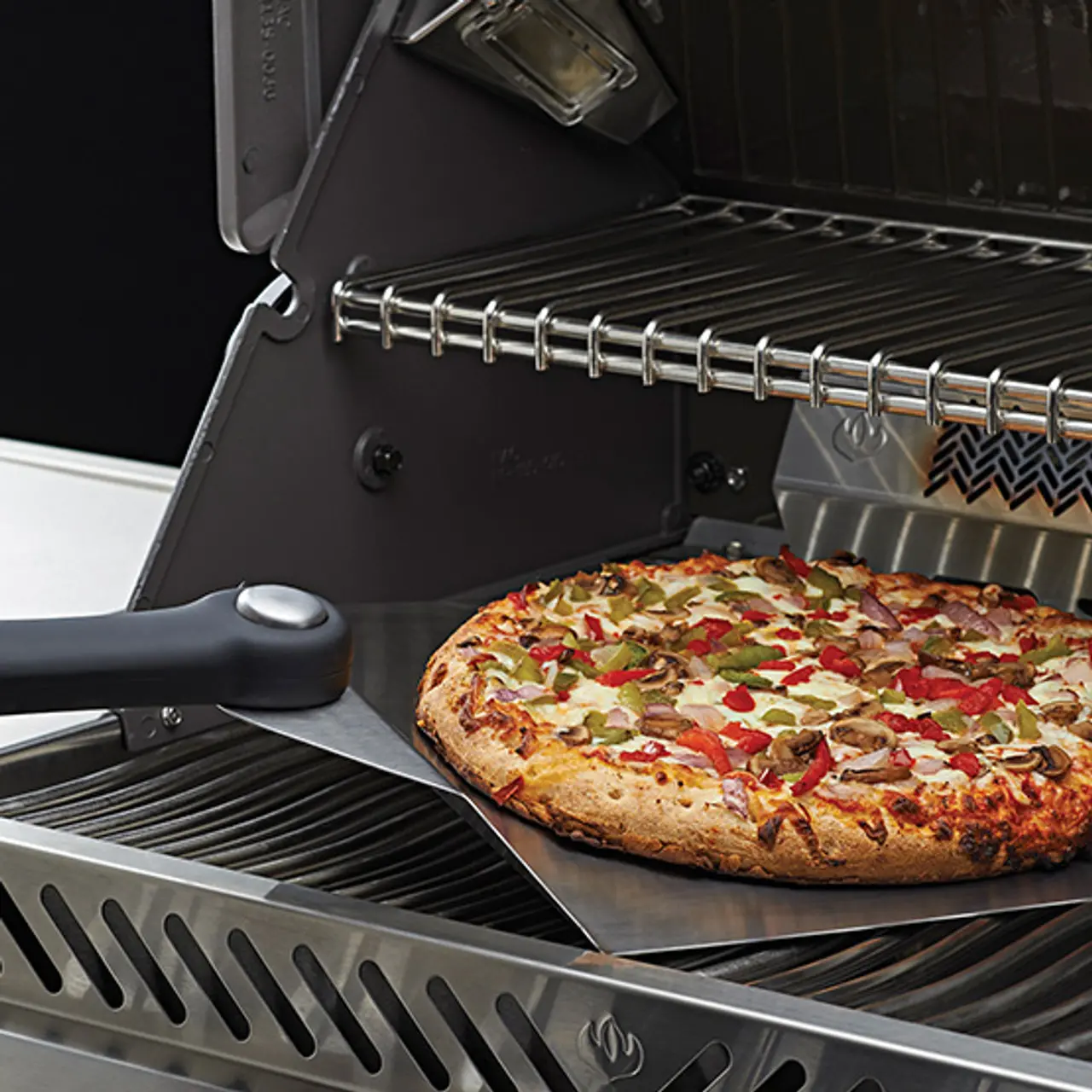 Широкая и прочная лопатка для пиццы, она позволяет аккуратно переложить пиццу на камень или решетку гриля. И так же легко снять, когда готовое блюдо подрумянится.