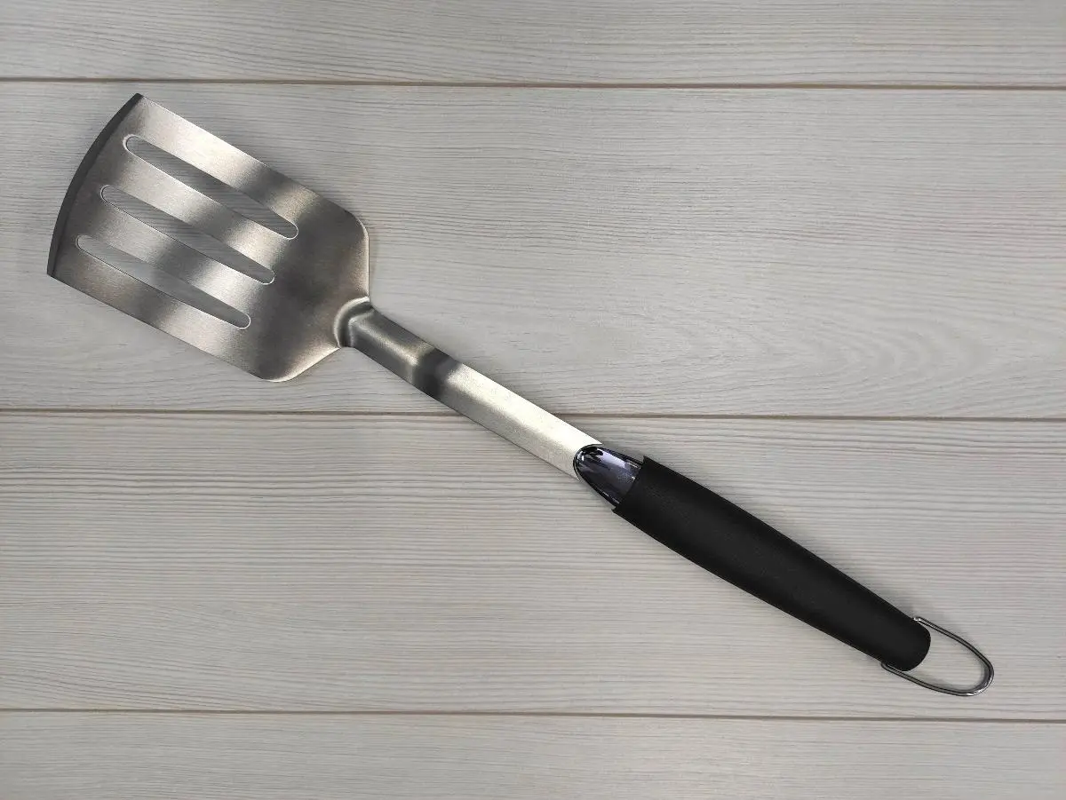 Гибкая, легкая лопатка из нержавеющей стали отлично подойдет для переворачивания котлет для бургеров, стейков или других блюд на вашем гриле.