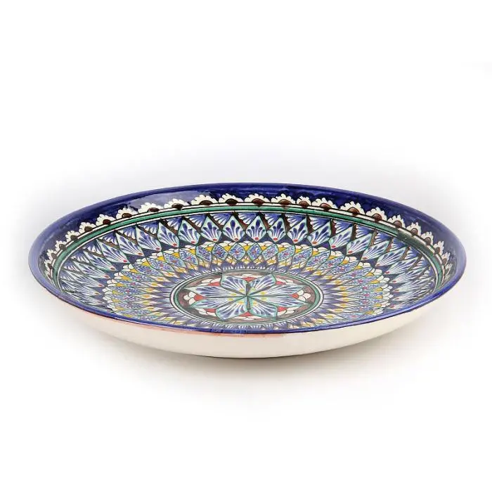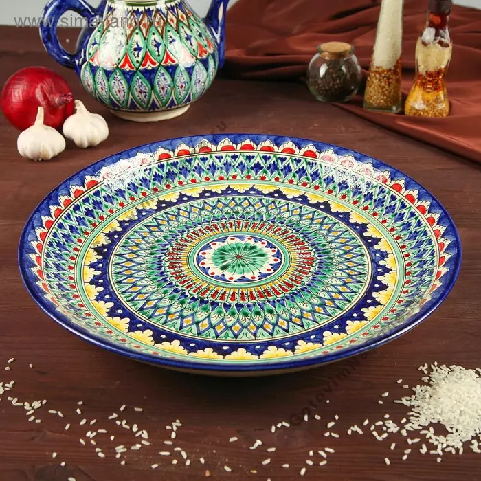 Ляган узбекский диаметром 37 см. Ручная работа. Изготовлен из керамики (обожженная глина). Применяется для подачи узбекских блюд в центр стола.