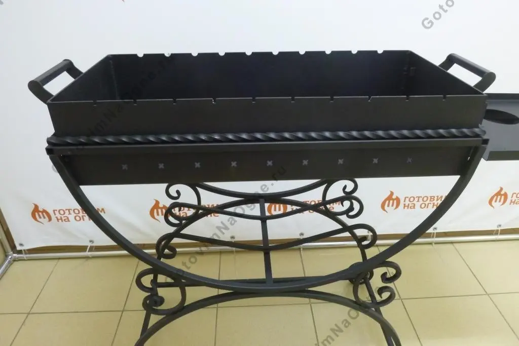 - Мангал выполнен из горячекатаной листовой стали толщиной 3 мм. и покрыт термостойкой краской.