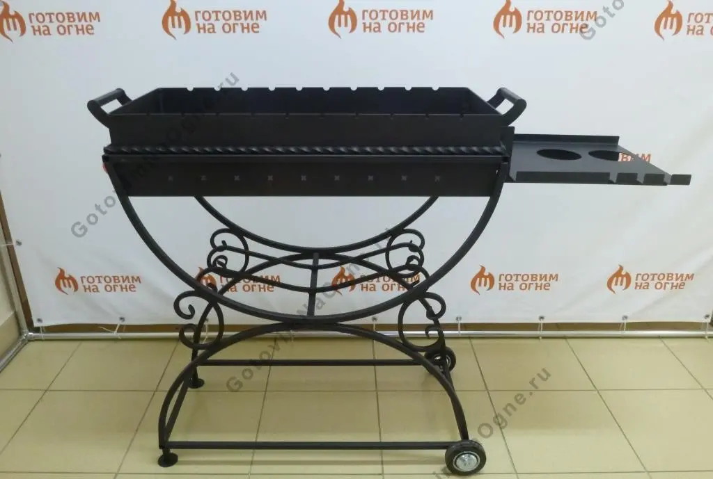 Изящный мангал из стали 3 мм. на колесах с пристольем