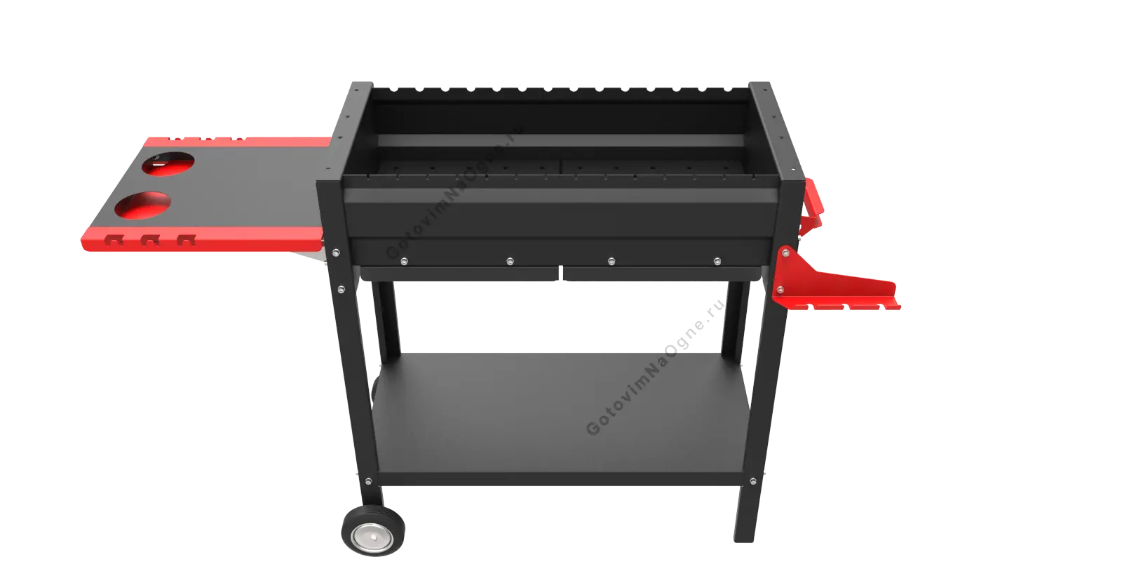 - Колеса и рукоятка для перемещения мангала одним человеком.