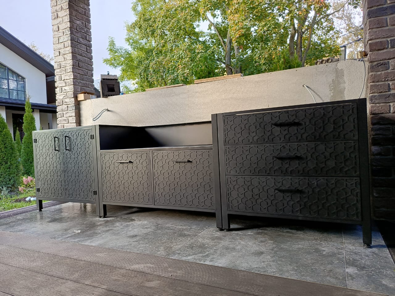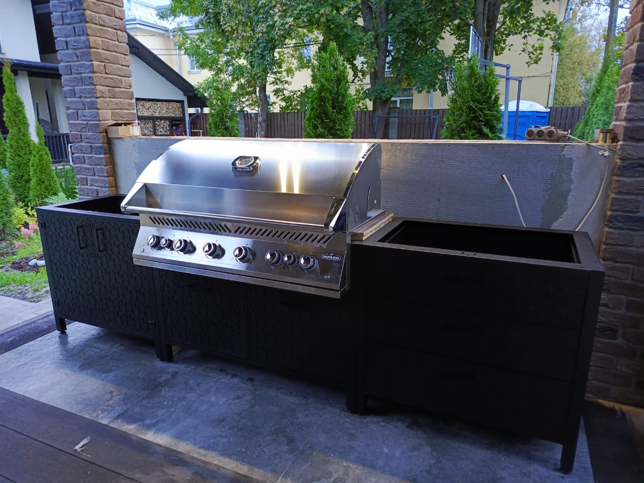 - тумба сконструирована под газовый гриль NAPOLEON Bilex-485 и имеет размер 82х60х87см.