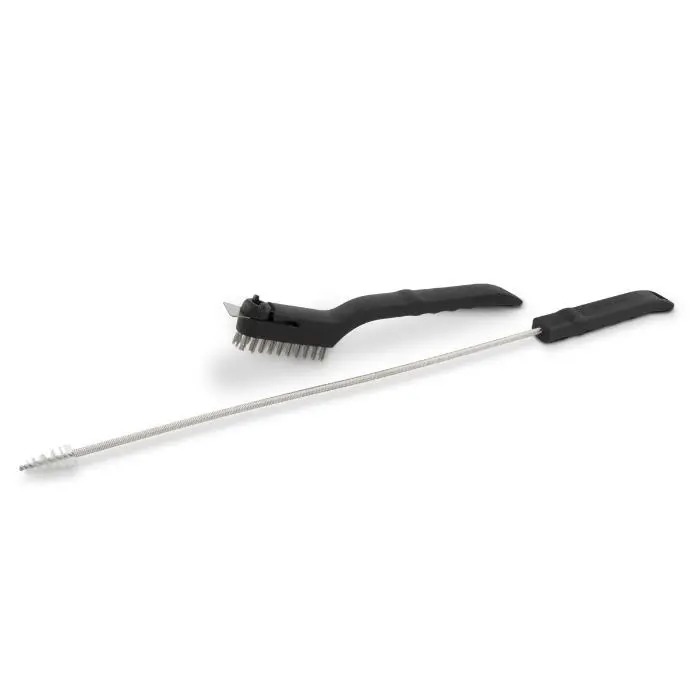 Удобная щетка с гибким щупом и скребок позволят удалить любые загрязнение в горелках и котле и вернут былую мощность вашему газовому грилю/